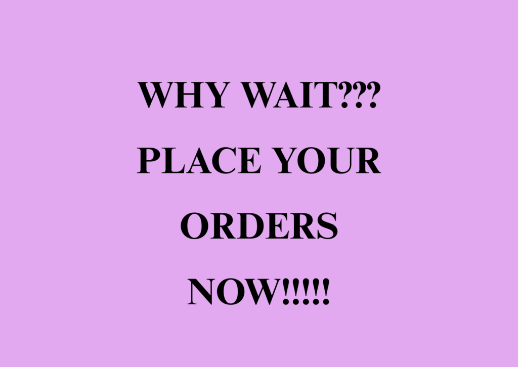 Prebooking items: Dispatch will take 2 weeks.